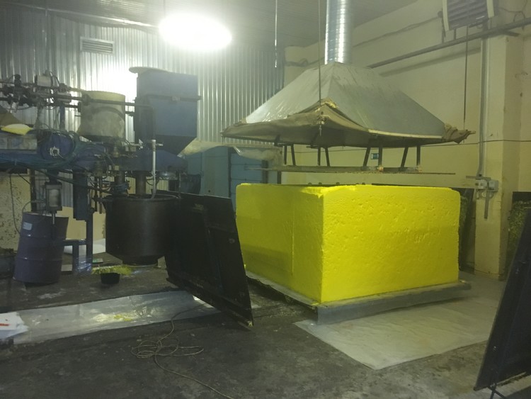 When using this technology, an elastic material is obtained that is excellent for furniture production. Block polyurethanes are a type of elastic filler with a wide range of specific characteristics and an apparent density from 16 to 60 kg/cub.m. The process is economical and does not require large areas.
